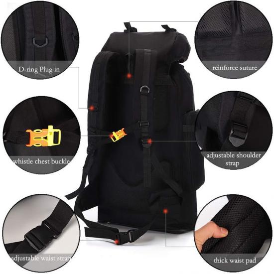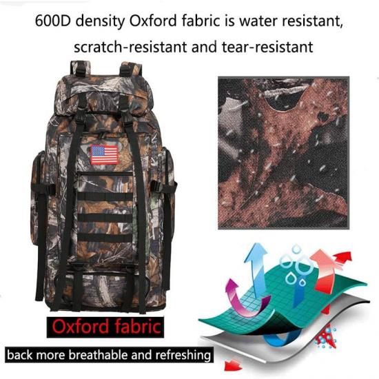 Этот рюкзак изготовлен из прочной ткани Oxford 900D, способной выдерживать большие нагрузки. Объём 70 л позволит разместить всё необходимое снаряжение и вещи.