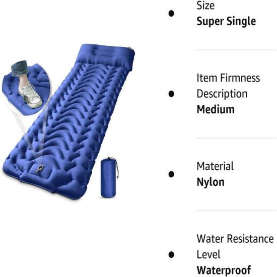 Этот надувной спальный коврик размером 78,7 x 27,6 x 3,2 дюйма (190 x 61,5 x 8,5 см) и весом всего 1,76 фунта (700 г) легко складывается для удобства хранения и транспортировки. Он специально разработан для оказания помощи при стихийных бедствиях.