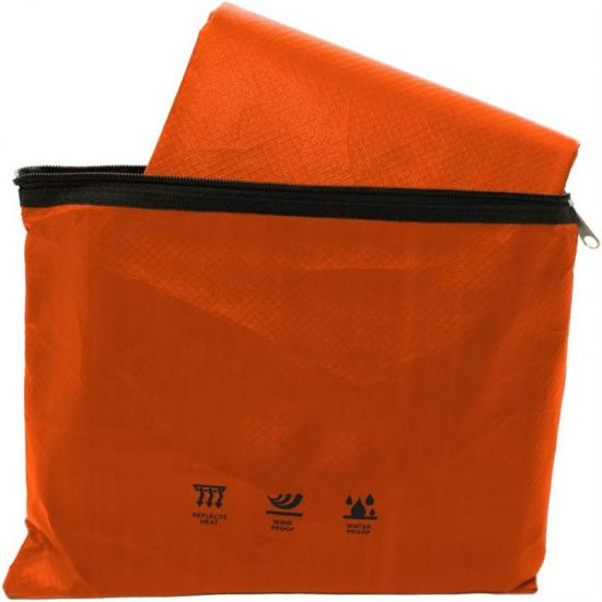 из двух слоев полипропилена, которые не только водонепроницаемы, но и могут быть использованы как одеяло, палатка, аварийный укрытие
