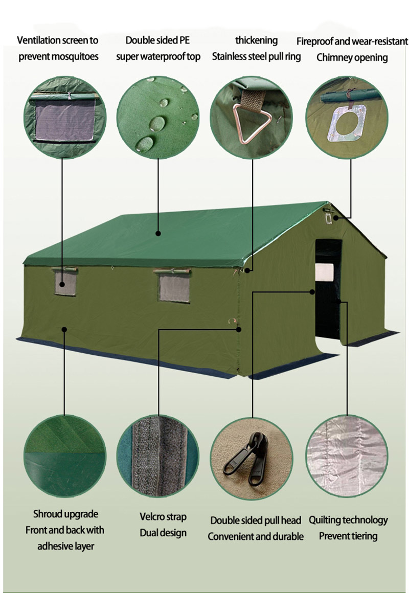 Когда наступает хаос, будь то стихийное бедствие, такое как лесной пожар, уничтожающий леса, или военная операция на неизведанных территориях, наша аварийная палатка — это идеальное решение. В операциях по оказанию чрезвычайной помощи она служит убежищем для перемещенных лиц, обеспечивая тепло и безопасность. Военные используют ее для организации быстрых полевых лагерей, поддерживая эффективность работы. Медицинские бригады превращают ее в спасательные мобильные клиники, оперативно оказывая помощь пострадавшим. Это ключевой элемент в гуманитарных операциях ООН, правительственных резервах на случай чрезвычайной ситуации и спасательных работах Красного Креста. Изготовленная из высококачественной водонепроницаемой и прочной ткани, она может выдержать самые суровые условия. Вы можете выбрать один из множества цветов, будь то для спасательных операций с высокой видимостью или для сохранения незаметности в определенных операциях. Ее вместительное внутреннее пространство вмещает необходимое аварийное снаряжение и укрывает множество людей, что делает ее незаменимой частью любой стратегии реагирования на чрезвычайные ситуации. |