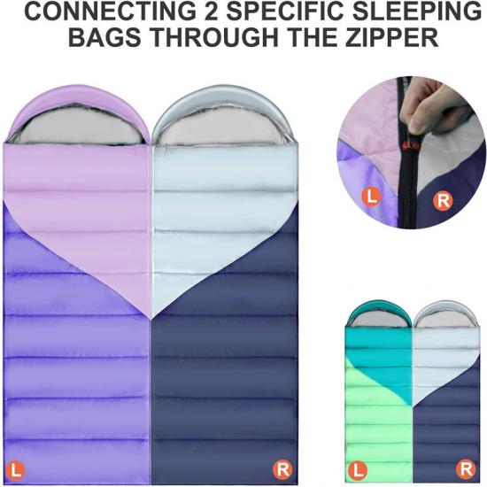 Спальный мешок из полиэстера весом 1,8 кг / 3,96 фунта оснащен высококачественными двусторонними молниями, которые не зацепляются, а в области ножек имеются регулируемые молнии для регулирования количества теплого или холодного воздуха, поступающего в мешок или выходящего из него. Это означает, что его можно настроить в соответствии с индивидуальными потребностями в различных условиях и температурах. Полностью раскрытый спальный мешок можно использовать даже как одеяло, что значительно повышает его универсальность и практичность.