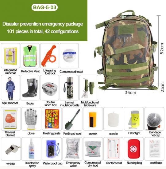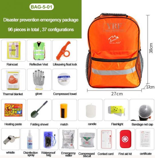 Топорик, фонарик с 3 режимами, многофункциональная карта, браслет выживания, двухтрубный свисток, проволочная пила, парашютный шнур, спасательное одеяло, комплексная аптечка и т. д. |