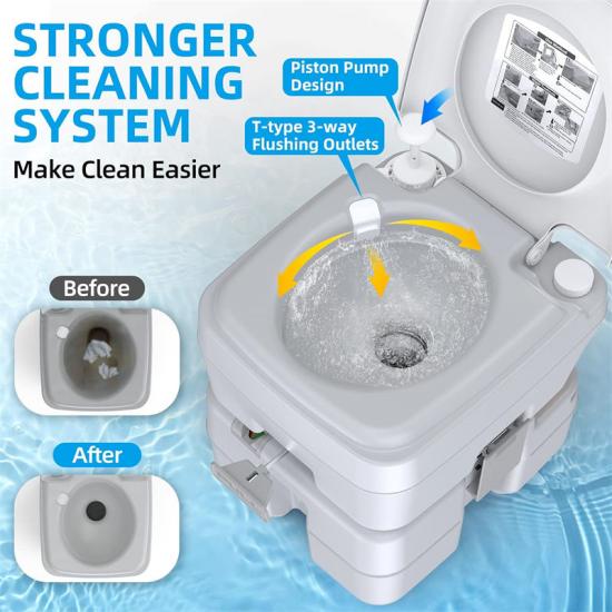 Главной особенностью этого прочного туалета Civilian Relief является его мощная система очистки. По сравнению с традиционным сильфонным насосом, усовершенствованный поршневой насос обеспечивает более мощный поток воды, обеспечивая очистку внутренней поверхности унитаза во всех направлениях. Т-образный излив с полным охватом усиливает эффективность очистки, позволяя легко очищать любую часть внутренней стенки унитаза.