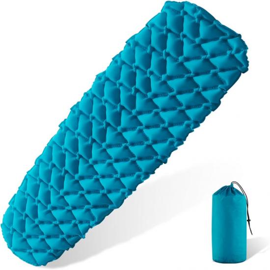 A: Надувной спальный коврик ромбовидной формы, изготовленный из армированного нейлона и термополиуретана.