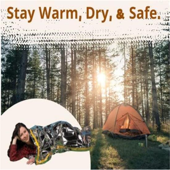 Изготовленный из высококачественной алюминизированной полиэфирной пленки, утепленный спальный мешок помогает сохранить до 90% тепла вашего тела в чрезвычайной ситуации.