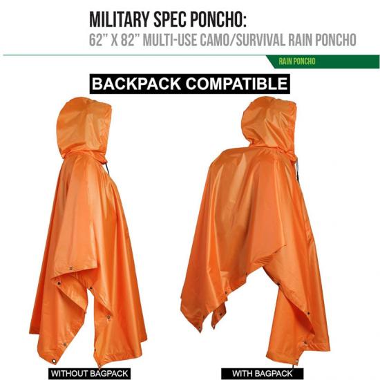 Пончо имеет ширину около 59 дюймов и общую длину 86 дюймов, что достаточно для размещения более крупных рюкзаков.