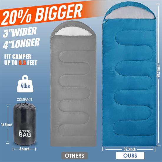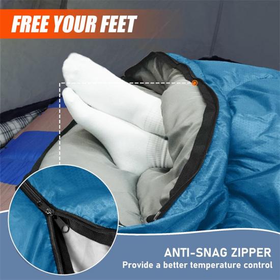 Водонепроницаемый внешний слой спального мешка из полиэстера 210T защищает от ветра и дождя, сохраняя тепло даже в холодную погоду.