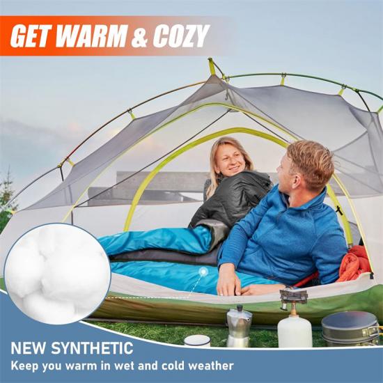 Новая синтетическая изолирующая подкладка внутри спального мешка отлично выполняет свои функции и сохраняет изоляцию даже в сырую погоду, не позволяя вам чувствовать себя влажным.