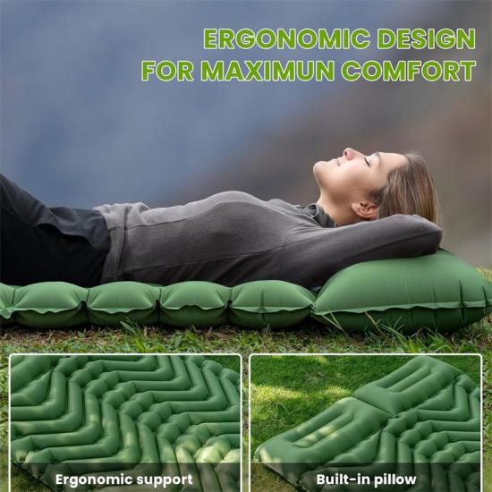 Наш легкий надувной спальный коврик с мягкой подкладкой для обеспечения готовности к чрезвычайным ситуациям изготовлен из нейлона 20D и ткани 300T.