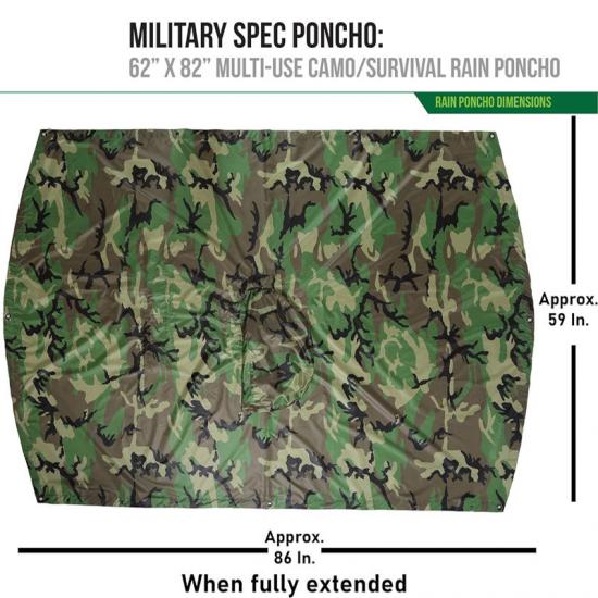 A: Да, пончо оснащено завязкой на талии и 8 прочными металлическими люверсами, что позволяет с легкостью использовать его в качестве палатки для выживания, для сбора воды, носилок для экстренной помощи, чехла для гамака, разделителя палатки, экрана для уединения и скрытого укрытия.