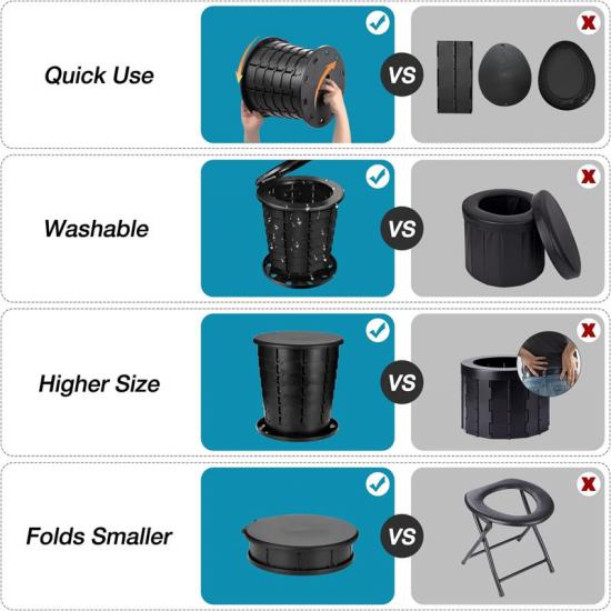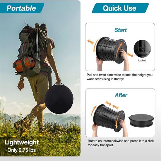 Этот компактный аварийный переносной туалет также отличается многофункциональной конструкцией, которая позволяет использовать его в качестве полевого туалета, складного табурета, ящика для хранения вещей, приставного столика или мусорного бака, свободно переключая функциональные крышки. Такая универсальность делает его чрезвычайно полезным в различных сценариях.