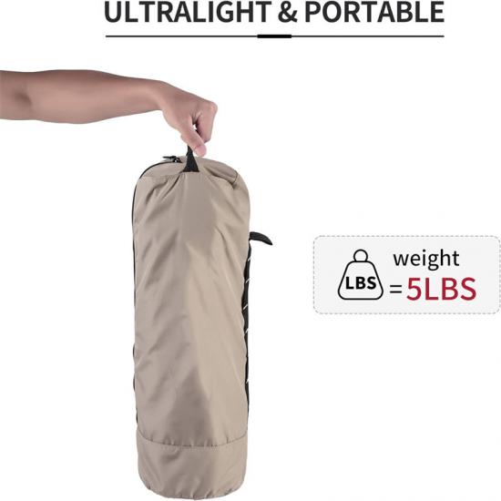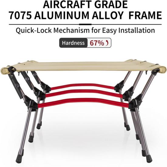 Каркас нашей складной кровати Emergency Supplies весом 2,2 кг (4,8 фунта) изготовлен из высококачественного авиационного алюминиевого сплава 7075 – материала, широко известного своей лёгкостью и прочностью. Он легко поддерживает всю конструкцию кровати, обеспечивая устойчивость и безопасность во время использования. Поверхность кровати выполнена из дышащей, износостойкой ткани Oxford 600D, которая не только прочна и износостойка, но и обладает хорошими влагоотталкивающими и теплосберегающими свойствами, обеспечивая комфортный сон в любых условиях.
