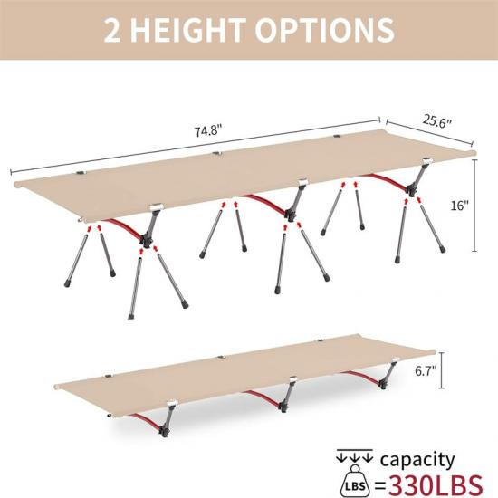 Наша портативная складная кровать Emergency Supplies Portable Folding Bed оснащена множеством практичных функций. Во-первых, она имеет два варианта высоты: низкий вариант 6,7 дюйма/17 см подходит для использования в палатках или на твердой поверхности, а высокий вариант 15,7 дюйма/40 см подходит для использования на травянистой, грязной и влажной поверхности. Эта модель разработана для адаптации к любому типу местности и обеспечивает вам спокойный и беззаботный сон. Во-вторых, кровать оснащена быстрой системой блокировки, которая позволяет легко открывать и закрывать ее одной рукой для удобства. Кроме того, кровать оснащена амортизирующими тросовыми трубками, что не только повышает устойчивость кровати, но и упрощает и удешевляет процесс установки и снятия.
