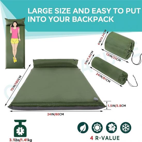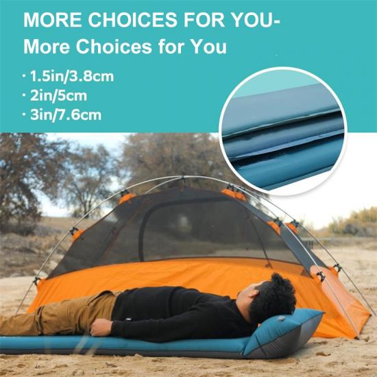 надувной спальный коврик покрыт водонепроницаемой тканью и наполнен пеной с эффектом памяти толщиной 1,5 дюйма для