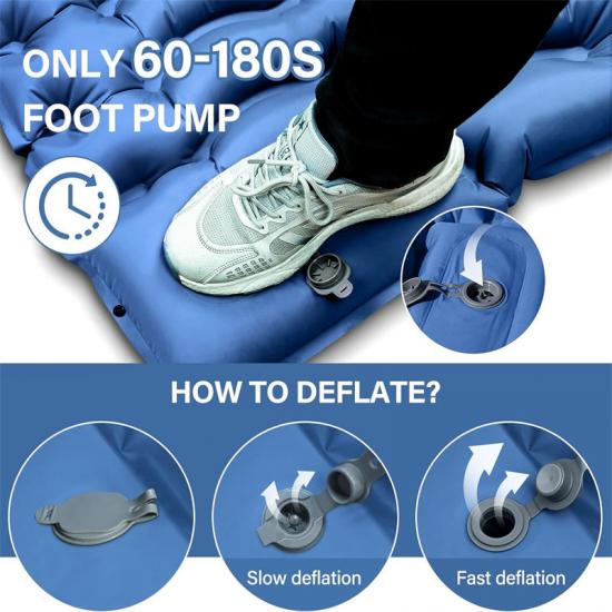 О: Мы рекомендуем использовать встроенный ножной насос надувного противопожарного коврика, убедившись, что клапаны плотно закрыты. Если у вас есть ручной насос, его тоже можно использовать.