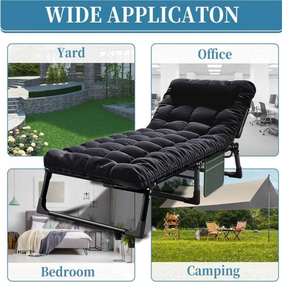 Большой размер 190 x 90 см подходит для пользователей разного роста и телосложения. Уникальная многофункциональная конструкция позволяет использовать кровать в различных положениях, например, лёжа, полусидя или для чтения, обеспечивая комфортную поддержку. Кровать компактно складывается для удобства переноски и транспортировки, что делает её идеальной для быстрого развертывания.