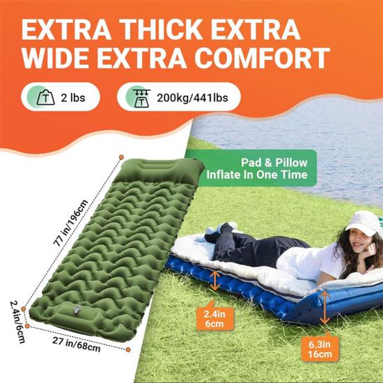 A: Толстый надувной спальный коврик имеет волнообразный дизайн с надувной подушкой, которая полностью эргономична.
