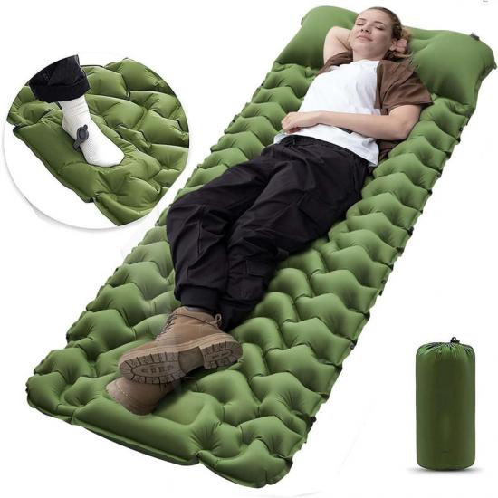 Этот надувной спальный коврик оснащен встроенным ножным насосом, который надувается менее чем за 30 минут.
