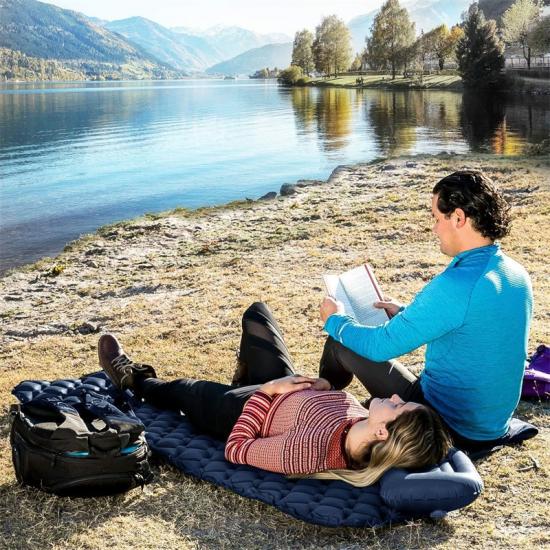 Наш надувной спальный коврик для улицы изготовлен из высококачественного материала, водонепроницаемого, моющегося и прочного на разрыв.