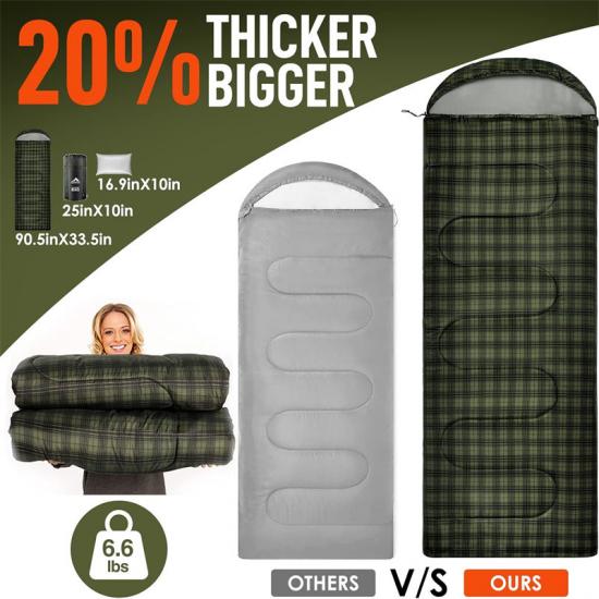 Спальные мешки со скидкой имеют размер 90,6 x 33,5 дюйма (23,7 x 87,5 см), они достаточно плотные и вместительные, чтобы весить всего 6,6 фунта (2,9 кг). Два отдельных спальных мешка просторные и удобные, с двумя спальными ковриками из пены с эффектом памяти размером 72,5 x 22 дюйма (181 x 50 см) для тёплого и комфортного сна. Спальные мешки Emergency Warmth поставляются с компрессионным мешком, а коврики из пены с двумя эластичными стяжками, которые легко сжимаются и удобны для хранения и переноски.