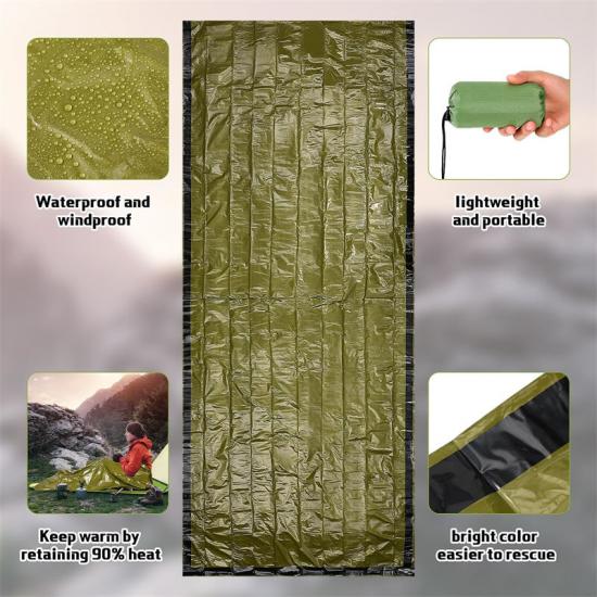 Отражая 90% тепла тела, этот спальный мешок для выживания, предлагаемый правительством по низкой цене, по-прежнему может обеспечивать превосходный теплоизоляционный эффект в экстремальных погодных условиях, чтобы вы могли спокойно отдыхать.