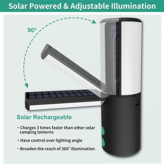Конструкция 90° с тремя регулируемыми солнечными панелями: портативный аварийный фонарь военного назначения оснащен тремя регулируемыми солнечными панелями, он не только может заряжаться от солнечной энергии, но и его регулируемая конструкция позволяет вам легко расширять зону освещения на 360° и регулировать угол освещения по мере необходимости.