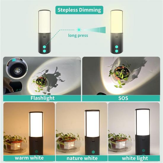 A: Военный регулируемый аварийный светильник обеспечивает плавную регулировку яркости, регулировку яркости от 0 до 100% и 5 режимов освещения: теплый белый, белый свет, смешанный цвет, фонарик и мигание.