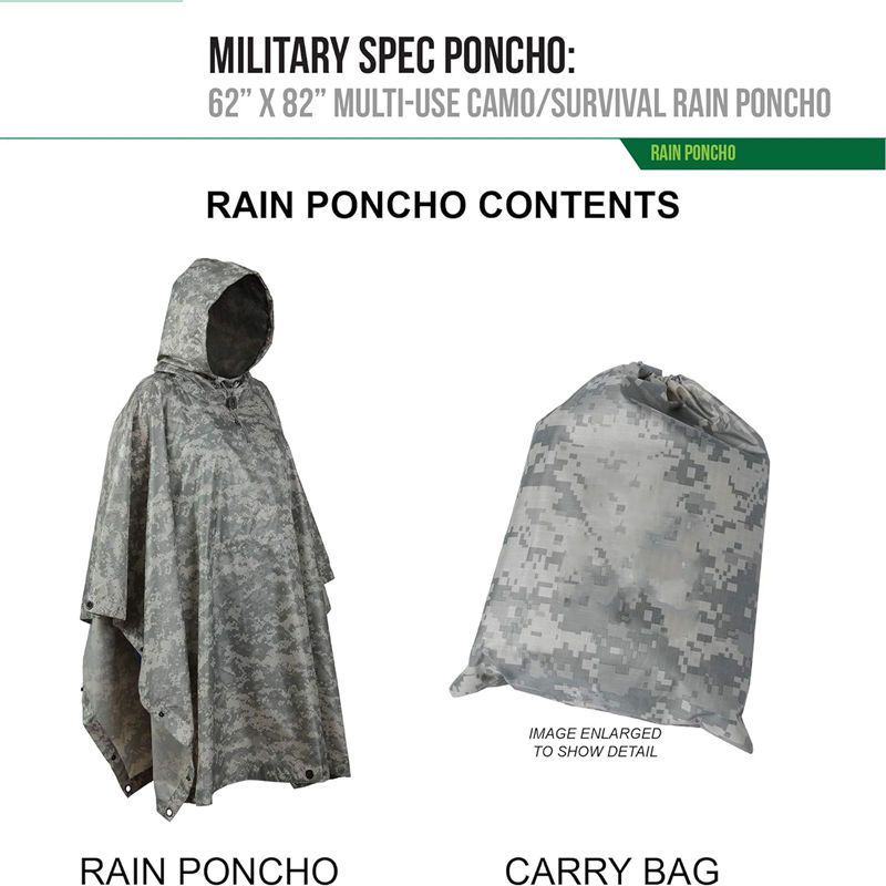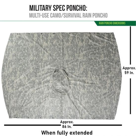 Проект Poncho Liner Engineering Rain Construction Sp спецификации : Изготовленное из полиэстера рипстоп высокой плотности 210T с полиуретановым покрытием, это дождевик-пончо имеет превосходный показатель водонепроницаемости 3000 мм. Его карманы для переноски шириной 6 дюймов достаточно широки для хранения различных предметов, а общая длина в 86 дюймов позволяет вместить более крупные рюкзаки. Регулируемый капюшон со шнурком и восемь прочных металлических люверсов обеспечивают пользователю гибкость и удобство. При общем весе 18 унций он умеренно тяжелый и его легко переносить.