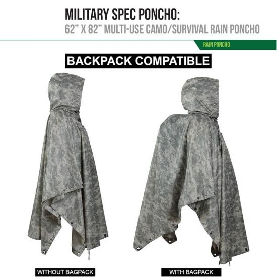 A: Плащ Poncho Liner Engineering Rain обеспечивает сухую защиту от непогоды и может использоваться в качестве укрытия для выживания.
