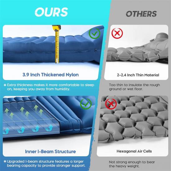 Что делает его идеальным для переноски. Многофункциональный надувной спальный коврик для экстренной помощи можно быстро надуть для использования.