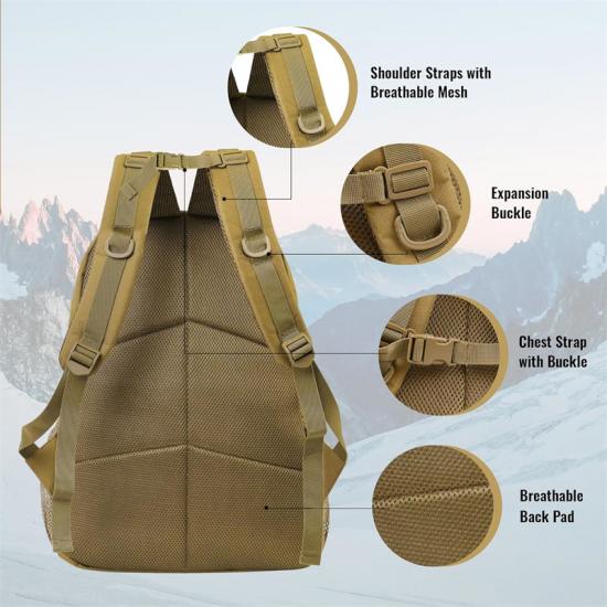 Военный рюкзак прочный, легкий, долговечный и водонепроницаемый, устойчив к разрывам, что делает его идеальным для любого приключения. Рюкзак изготовлен из высококачественных материалов, способных выдерживать суровые условия и интенсивное использование.