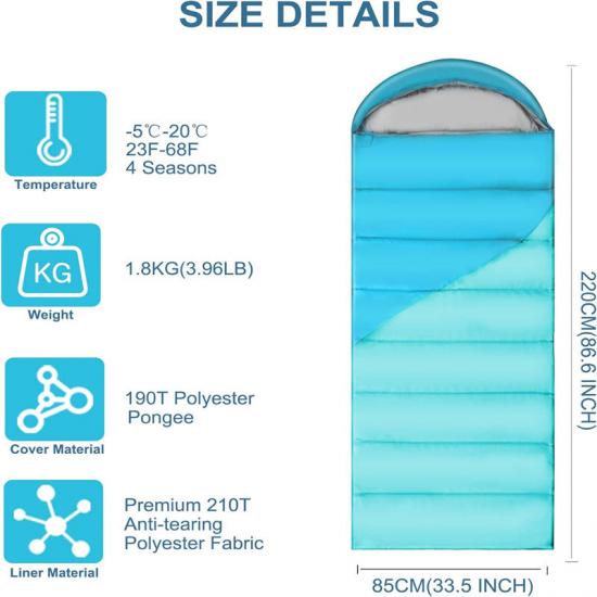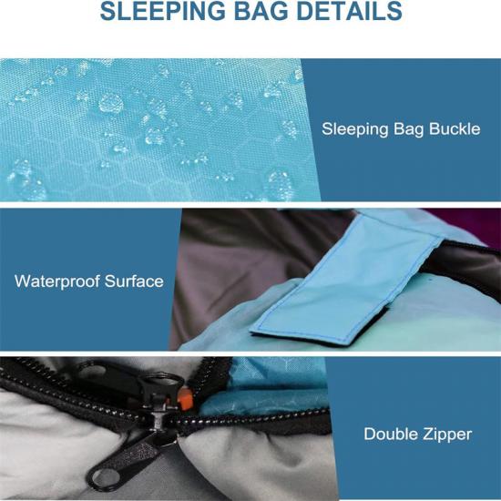 Боковые молнии и нижняя молния портативного спального мешка позволяют превратить его в одеяло, что является отличным вариантом в некоторых чрезвычайных ситуациях, когда одеяла может быть недостаточно. Кроме того, два спальных мешка можно сшить вместе, чтобы получить двухместный спальный мешок, что очень удобно для тех, кому нужно больше места.