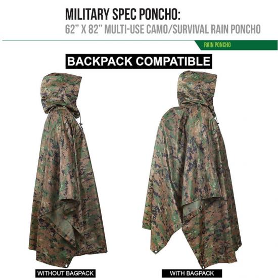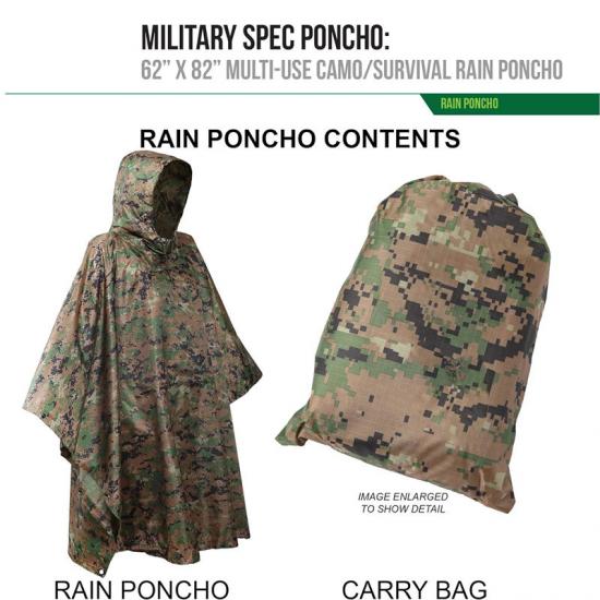 A: Дождевик-пончо разработан с учётом универсальности и может использоваться в самых разных ситуациях, например, как зонтик от солнца, палатка для выживания, водосборник, носилки для экстренной помощи, чехол для гамака, разделитель палатки, защитный экран и скрытое укрытие. Поэтому да, вы можете использовать его как укрытие в суровую погоду.