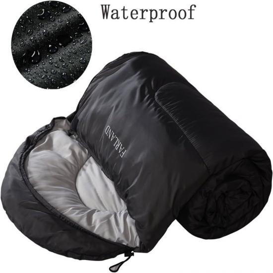 Наши мягкие и теплые спальные мешки подходят для прохладной/холодной погоды с диапазоном температур 20-62℉/-7-17℃. Спальный мешок имеет водонепроницаемую и ветрозащитную конструкцию, которая сохраняет тепло и защищает от влаги даже в экстремальных погодных условиях. Это стало возможным благодаря технологии двойного наполнения, и вы сможете комфортно спать, надев спальный мешок с ветро- и водонепроницаемой конструкцией на молнии. Спальный мешок сохраняет тепло сверху донизу благодаря регулируемому шнурку и капюшону, который обхватывает голову, обеспечивая тепло. После использования вы можете легко убрать его в сумку-органайзер, что делает его очень удобным для хранения и переноски.