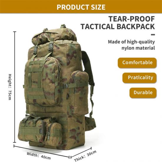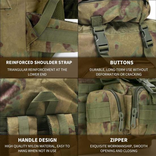 Военный рюкзак прочный, легкий, долговечный и водонепроницаемый, устойчив к разрывам, что делает его идеальным для любого приключения. Рюкзак изготовлен из высококачественных материалов, способных выдерживать суровые условия и интенсивное использование.