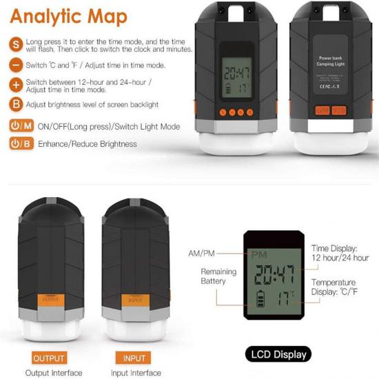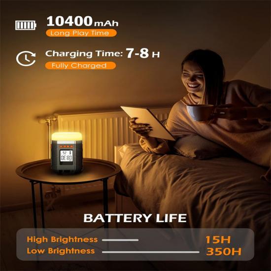4 режима освещения, одна зарядка может обеспечить до 30 часов бесперебойного холодного освещения (максимальный режим освещения) и более 500 часов приглушенного освещения (режим слабого освещения)