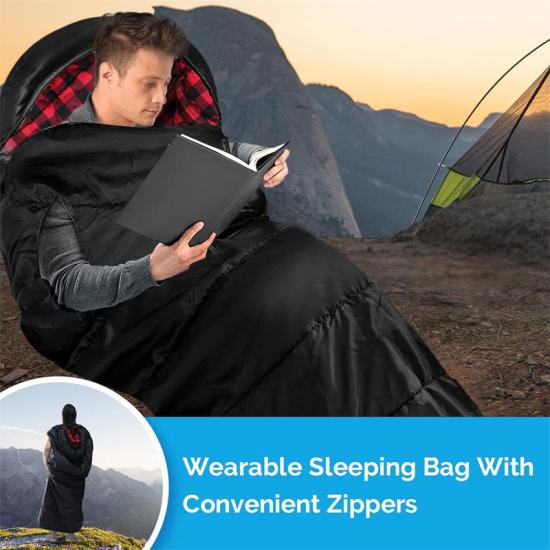 Кроме того, дополнительные элементы конструкции спального мешка с защитой от разрывов, предназначенные для оказания экстренной помощи, такие как надеваемые капюшоны, застегивающиеся на молнии манжеты, конструкция нижней застежки-молнии, ремешки на липучках и ветрозащитные полосы, призваны обеспечить оптимальный комфорт и защиту, помогая вам полноценно отдохнуть ночью в любой ситуации.