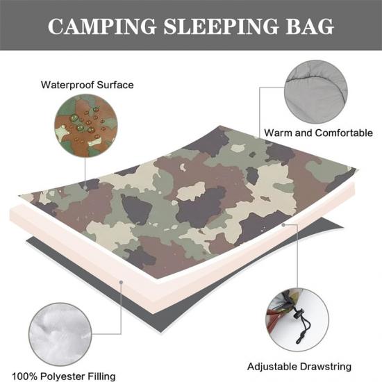 Влагостойкие спальные мешки ООН изготовлены из полиэстеровой ткани рипстоп 290Т в качестве наружной ткани с полиэстеровой пенной подкладкой 240Т для обеспечения долговечности и комфорта спального мешка.