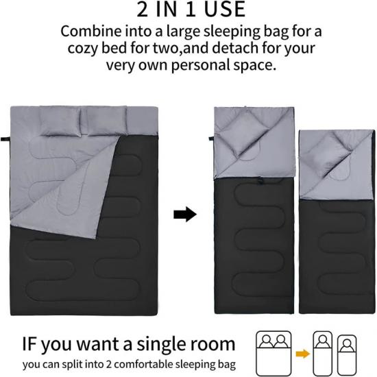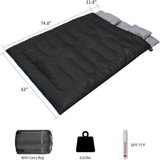 Размер спального мешка для защиты от наводнений составляет 63*86,6 "/160*230 см, а просторная прямоугольная конструкция обеспечивает максимальный комфорт, подходит для 3-4 сезонов, а номинальная температура составляет 5℃-25℃.