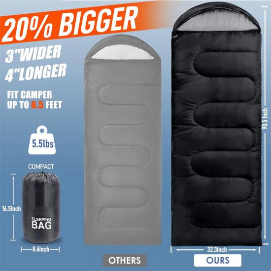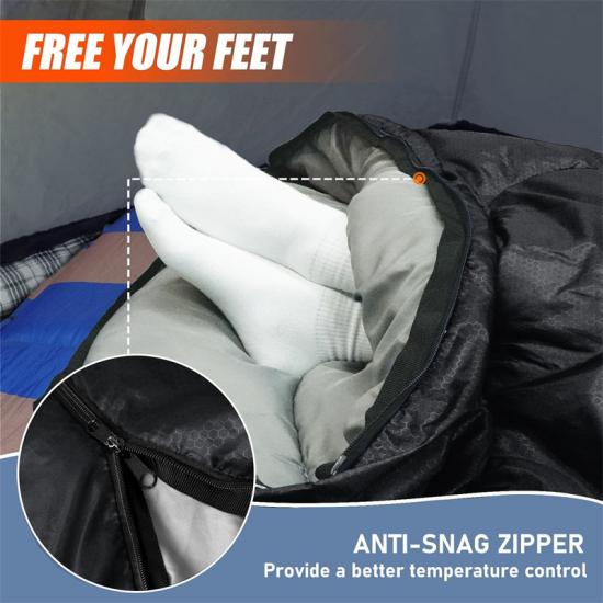 Внешняя поверхность спального мешка Spaciou весом 4 фунта изготовлена из водонепроницаемого полиэстера 210T, который защищает от ветра и дождя и сохраняет тепло даже в холодную и дождливую погоду. Кроме того, внутри спального мешка используется новый синтетический утеплитель, который обеспечивает хорошую изоляцию даже в сырую погоду и предотвращает ощущение сырости.