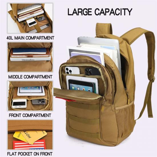 Рюкзак военного класса 40 л, ткань Оксфорд 600D, надежный для спасения в убежищеЭтот рюкзак изготовлен из высококачественной ткани Oxford 900D, которая прочна и выдерживает большие нагрузки. Эргономичные лямки и мягкая спинка обеспечивают максимальный комфорт даже при переноске тяжёлых грузов.