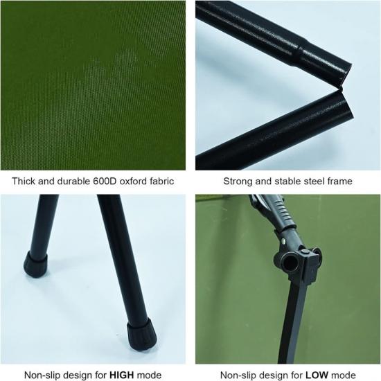 Благодаря двум режимам высоты складную портативную кровать Super Cheap Provide Relief можно установить на двух разных высотах: 18 см и 38 см, чтобы удовлетворить различные потребности. Настройка высоты 18 см обеспечивает более близкую к полу поверхность для сна, а настройка высоты 38 см обеспечивает лучшую изоляцию и вентиляцию.