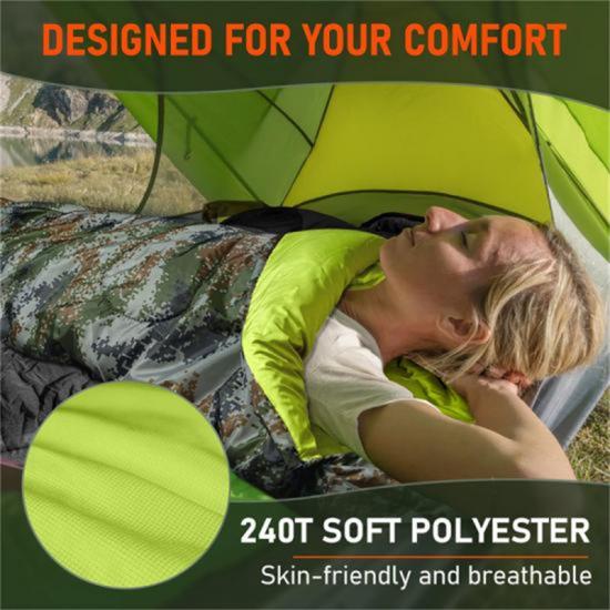 Самонадувающийся коврик можно использовать в качестве спального мешка или кровати для вашей безопасности. Защелкивающаяся конструкция позволяет прикрепить обе стороны пенопластовой прокладки. Благодаря застежке-молнии спальные мешки Outdoors Revengeans можно разделить на два одеяла размера queen-size. Такая конструкция позволяет нашей спальной системе прекрасно себя чувствовать как на открытом воздухе, так и в помещении, принося тепло и комфорт вашим ночам.